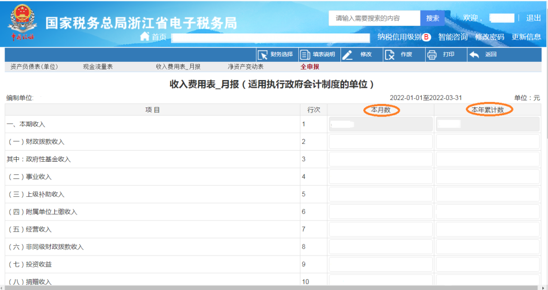 特别提醒:申报系统的报表设置了勾稽关系,本年累计金额=本月金额+上季度的本年累计金额。所以按季报送的企业,申报第一季度财务报表的“本月金额”要填写1-3月的数据的,跟后面的“本年累计金额”就是相同的数据。